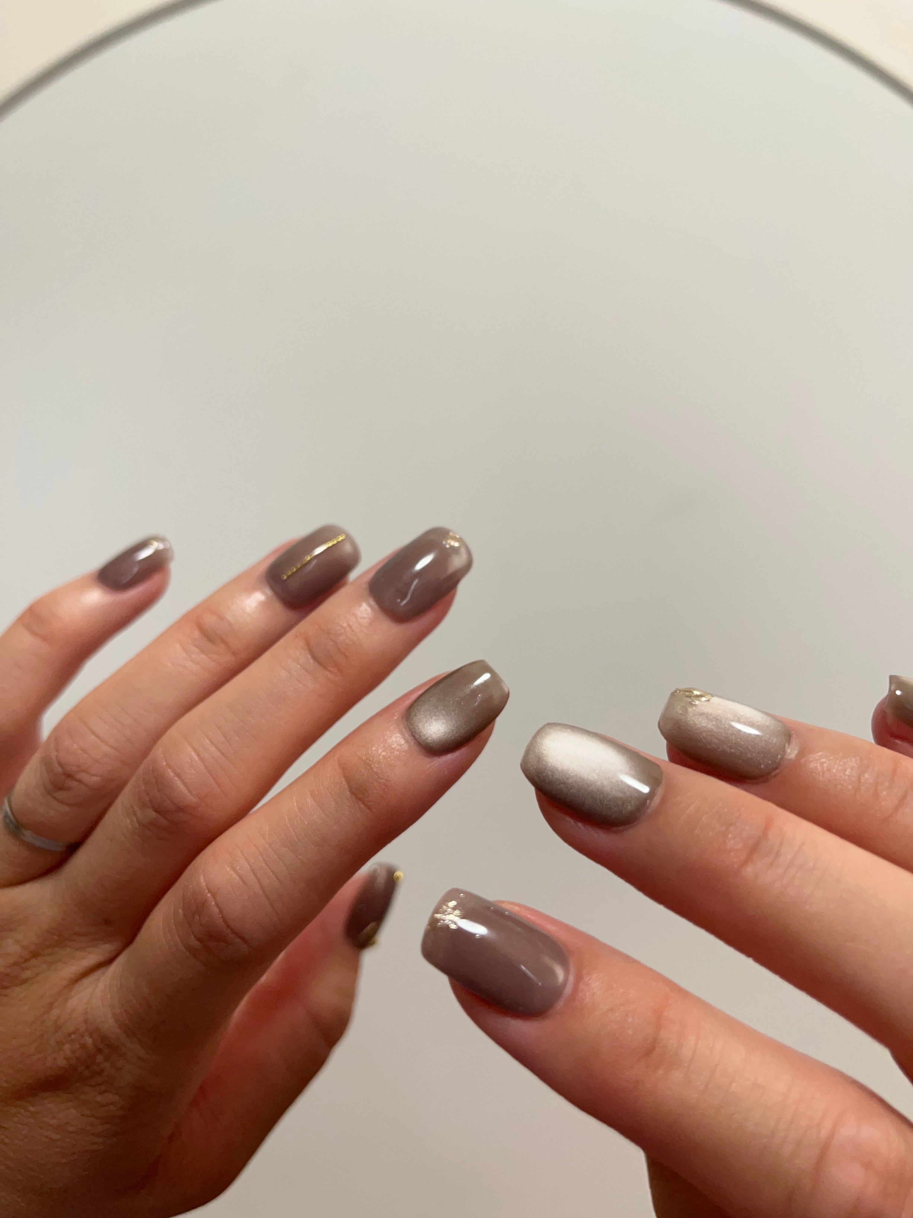金のジェルを指先に置くことによって手が長く見えるかも?!