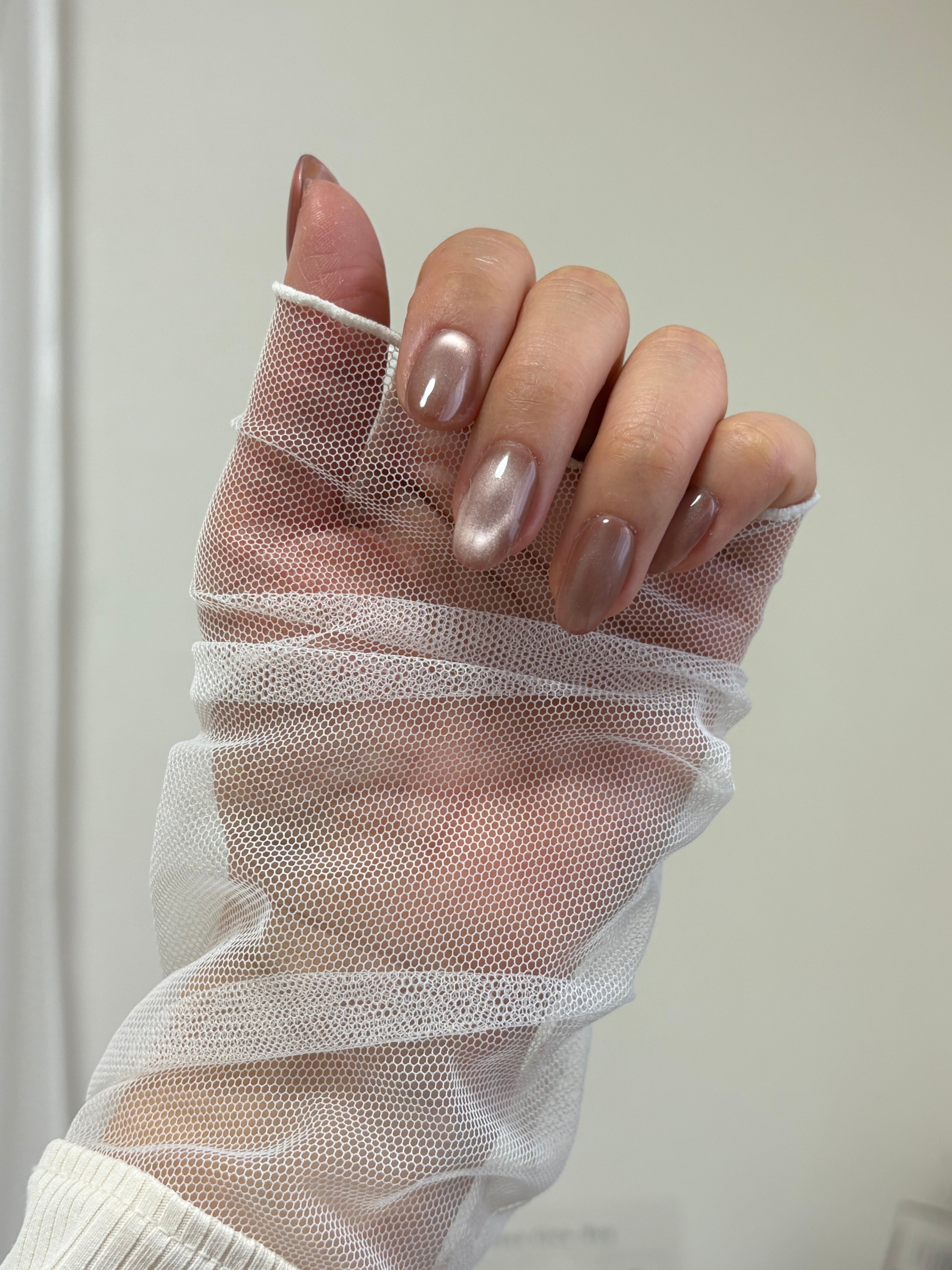 キラキラのフラッシュネイルを片手に。